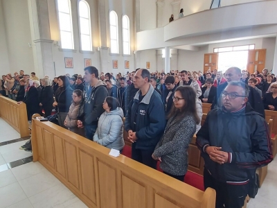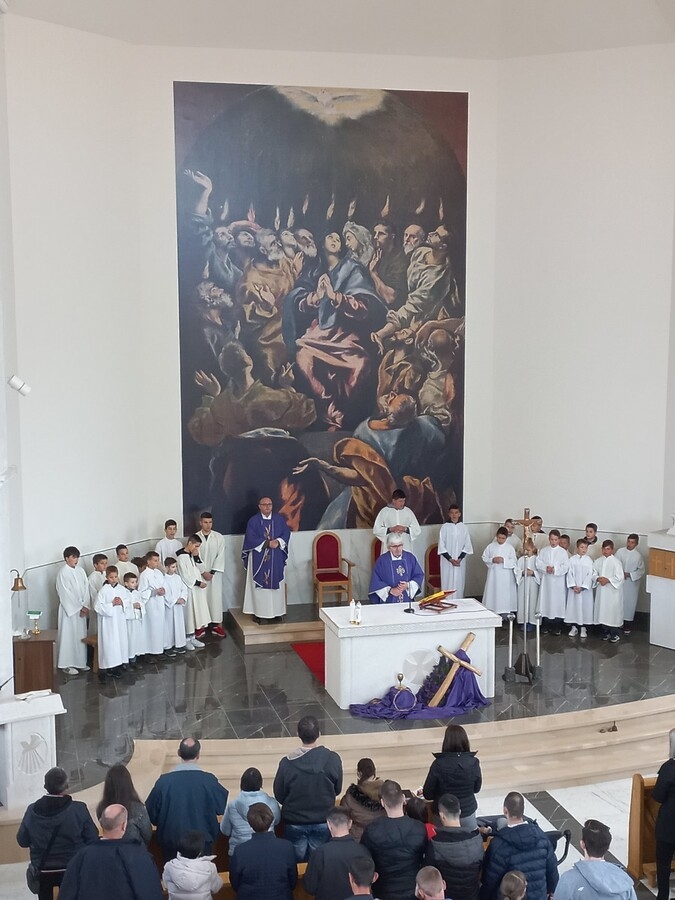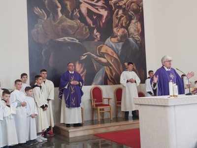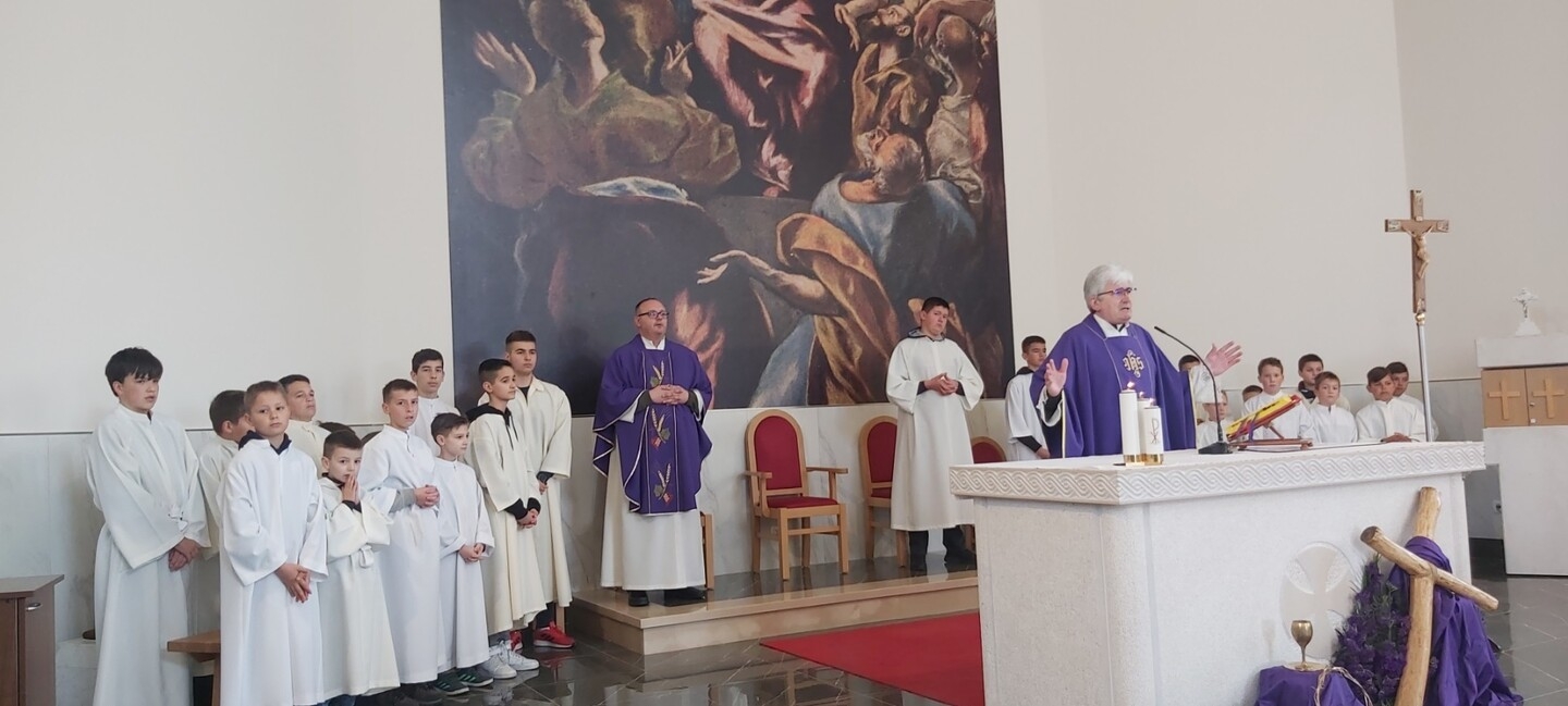 Oslanjajući se na evanđelje Pete korizmene nedjelje, don Željko je govorio o ženi zatečenoj u grijehu, za koju su farizeji i pismoznanci tražili da se kamenuje. Pozvao je sve okupljene vjernike da umjesto kamena koji svi često držimo u rukama, želeći ga usmjeriti prema drugima, radije stisnutu šaku stavimo na prsa, tražeći oprost za svoje grijehe. Stav poniznosti, naglasio je don Željko, jedini je stav s kojim trebamo doći pred Gospodina.