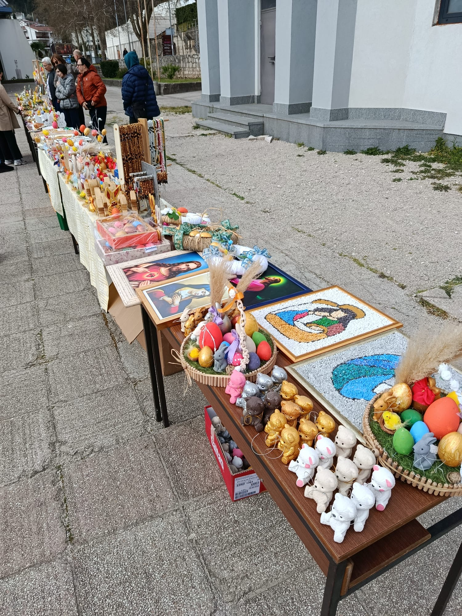 Na Petu korizmenu nedjelju, 22.3.2026. godine Katedrala Marije Majke Crkve bila je domaćin prodajno-promidžbene izložbe radova korisnika Caritasovih radionica za osobe s invaliditetom Nazaret iz Mostara i Betlehem iz Čapljine. Korisnici i njihovi voditelji nazočili su prijepodnevnim svetim misama nakon kojih su ponudili svoje rukotvorine prisutnim vjernicima. Župljani ove mostarske župe su se u velikom broju odazvali i pohodili štandove na kojima su mogli vidjeti i kupiti zanimljive dekorativne i uporabne predmete od prigodnih uskrsnih dekoracija do religijskih slika i drugih posebnih rukotvorina koje korisnici ovih dviju radionica svakodnevno izrađuju uz pomoć i vodstvo svojih instruktora. Župnik don Josip Galić je na svim misama pozdravio i poseban naglasak stavio na Betlehemce i Nazarećane te pozvao okupljene vjernike da kupnjom njihovih rukotvorina pomognu rad ovih radionica, u kojima korisnici za svoj rad dobivaju prigodni džeparac.