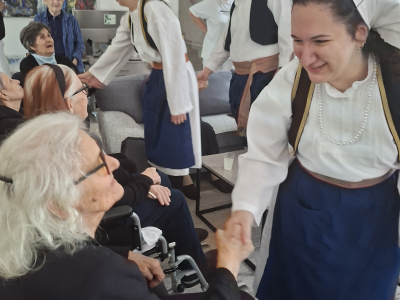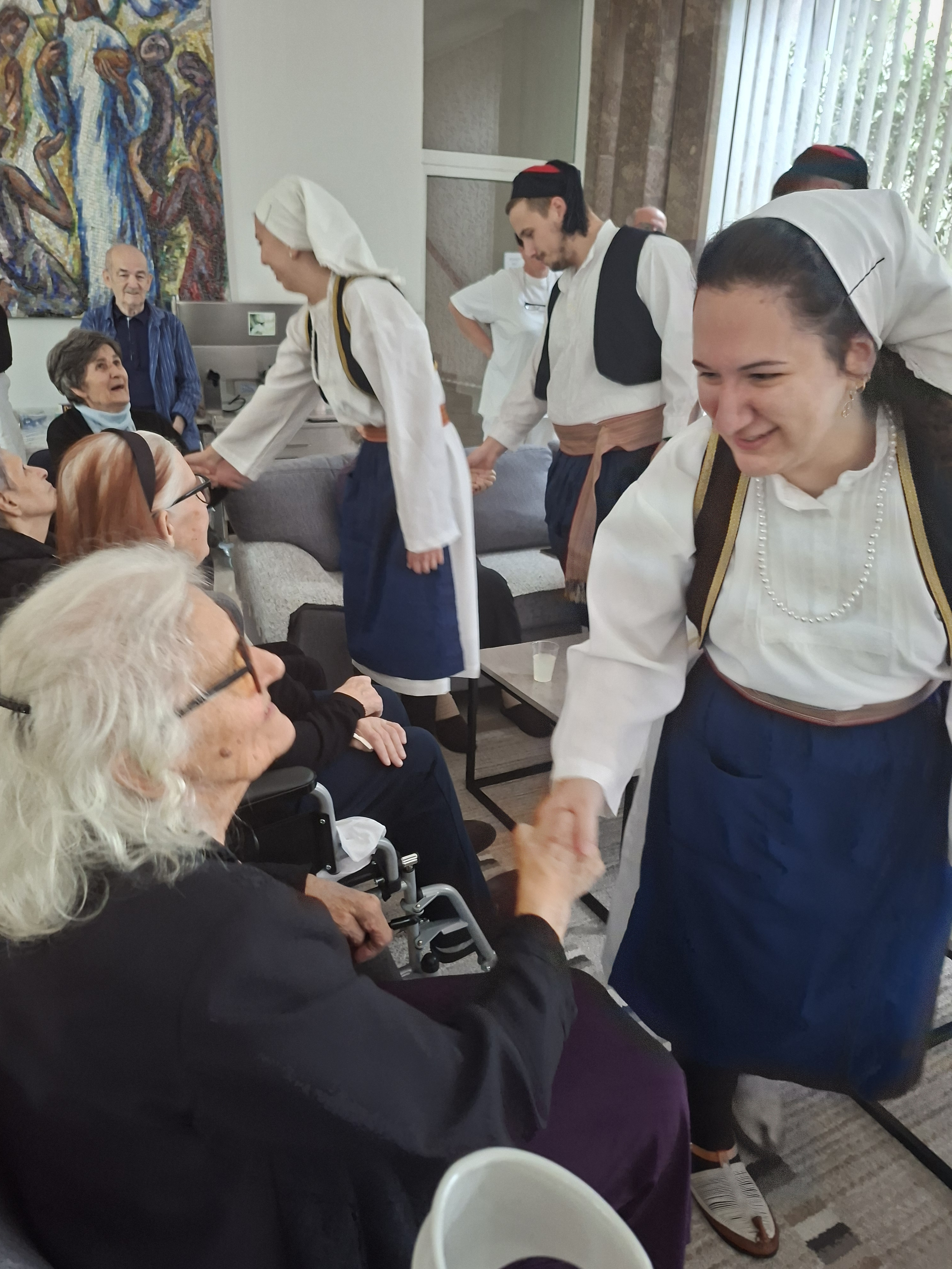 Članovi HKUD-a priredili su našim štićenicima program ispunjen pjesmom i plesom iz naše Hercegovine. Svojim izvedbama podsjetili su starije na neka davna vremena kada su i oni sami s veseljem sudjelovali na “sjelima”, plesali i okupljali se uz pjesmu, igru i druženje. U njihovim očima mogla se vidjeti radost, a na licima osmijesi koji su govorili više od riječi – povratak u mladost i lijepa sjećanja.