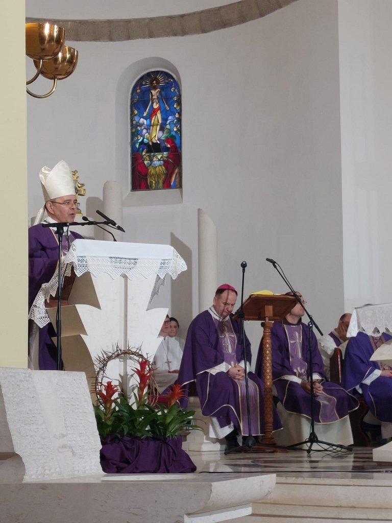 Prigodnu propovijed uputio je biskup Radoš koji je podrijetlom iz tomislavgradskog kraja. „Na jednom smo važnom putovanju, a to je korizmeno putovanje. I na tom putovanju se želimo obnoviti, odnosno dopuštamo Bogu da nas obnovi, da ono što je u nama bolesno Gospodin liječi i izliječi. I da budemo pred njim zdravi, da budemo pred njim i od njega spašeni“, kazao je na početku homilije varaždinski biskup.