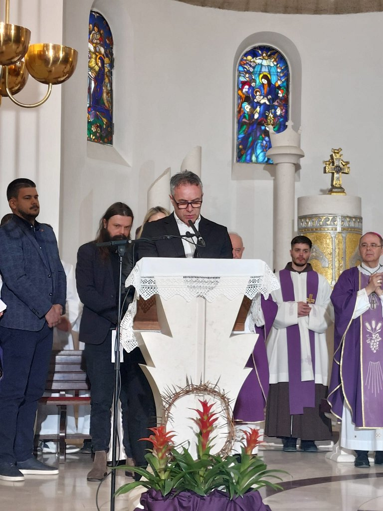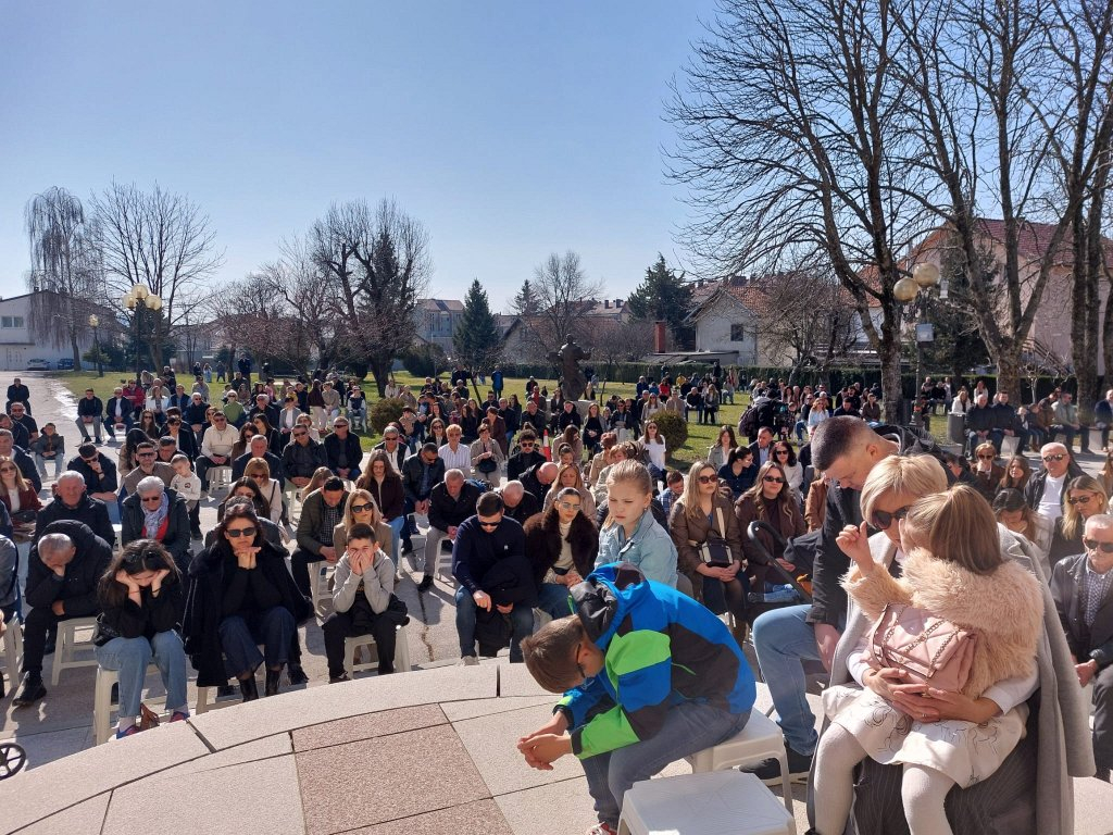 „Danas cijela naša crkvu u Hrvatskoj misli, moli i osjeća žeđ ovoga naroda. Nismo ravnodušni i ne možemo biti jer to nije kršćanski stav… Želimo imati ruku dobrote koja je ruka dobrote kao što je to Božja ruka koja iz sebe, iz svoga izvora, daje drugima. Danas želimo moliti za ovu Crkvu i za sve ljude u BiH. Ne samo kršćane, vjernike, nego za svakog čovjeka, da skinemo onu zavjesu koja nas priječi od drugih kao što to čini Isus. Molimo za obitelji koji u tišini nose svoje križeve. Molimo za starce koji su ostali ovdje čuvati ognjišta kako bi se djeca mogla vraćati na njega. Molim za mlada koji traže razlog da ovdje ostanu i da ono što vole nikada ne napuste, nego da traže ovdje prostor svoga života. Molimo za sve župne zajednice, danas posebno za ovu, da pod suncem teških kušnji čuvaju vjeru, dostojanstvo, ono blago koje se čuva u srcu i daruje se drugima.